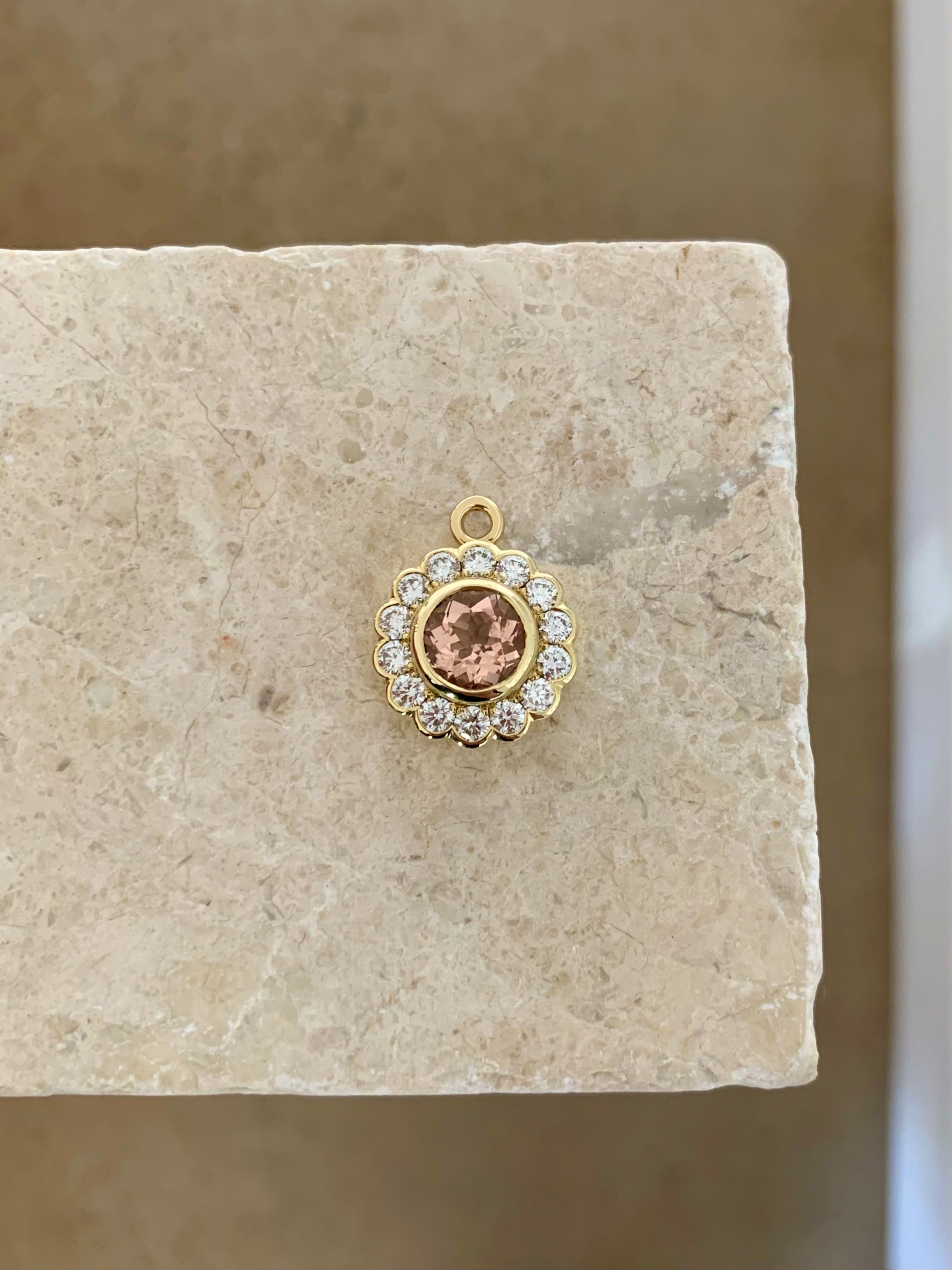 A gorgeous collection of tourmaline, morganite, yellow sapphire, pink quartz & zircons surrounded by diamonds (G colour SI1). A beautiful addition to any linked necklace or combination of pendants & charms. Includes a 9ct yellow gold link.