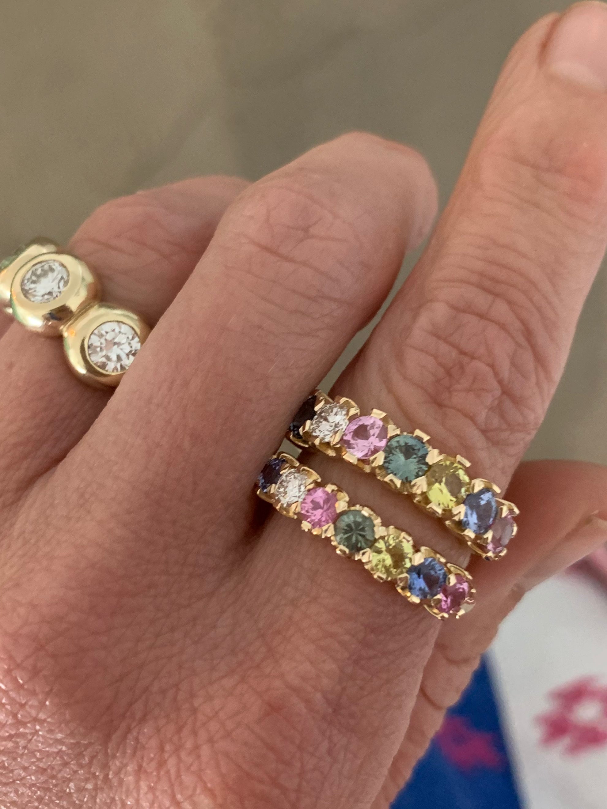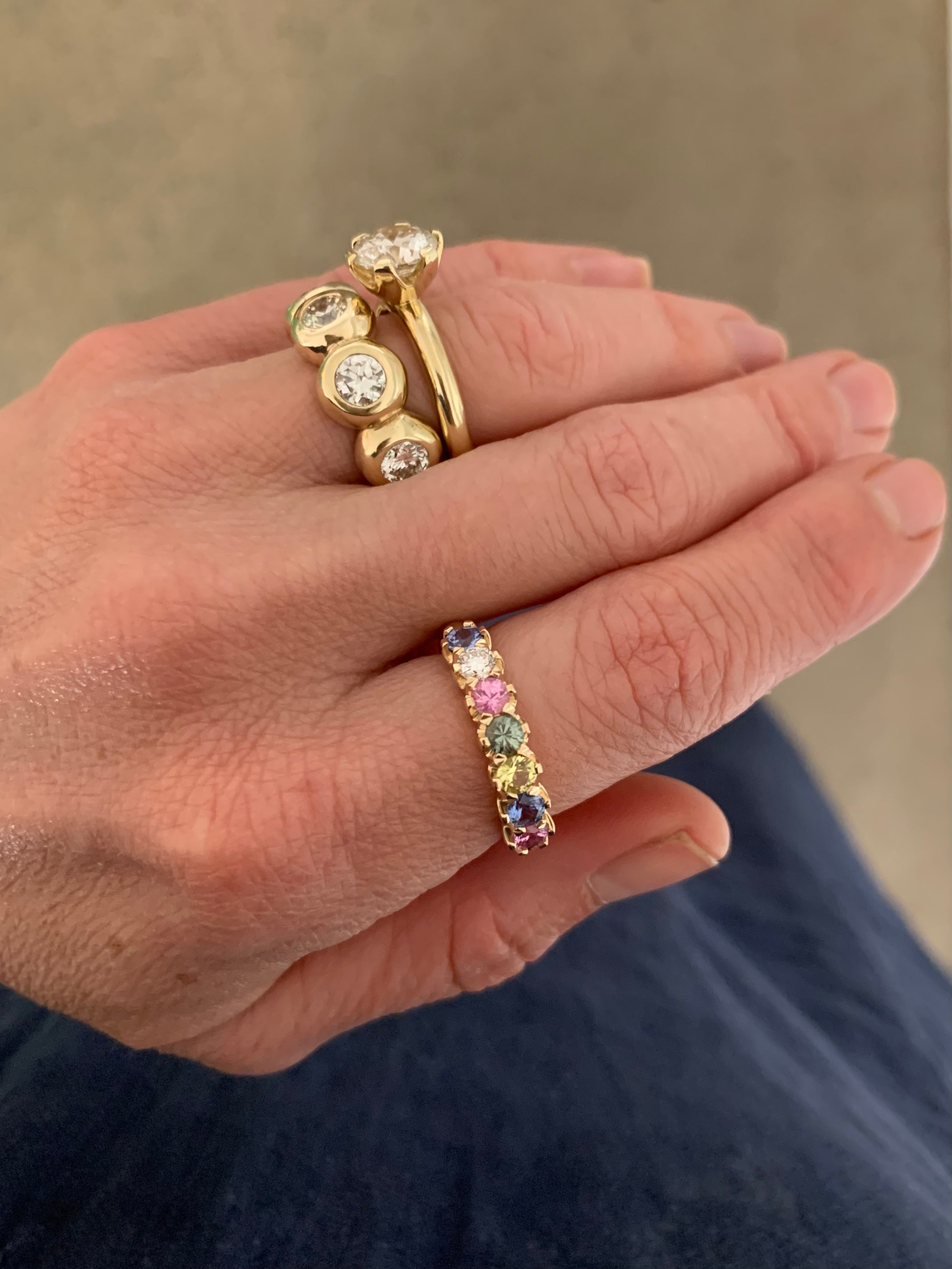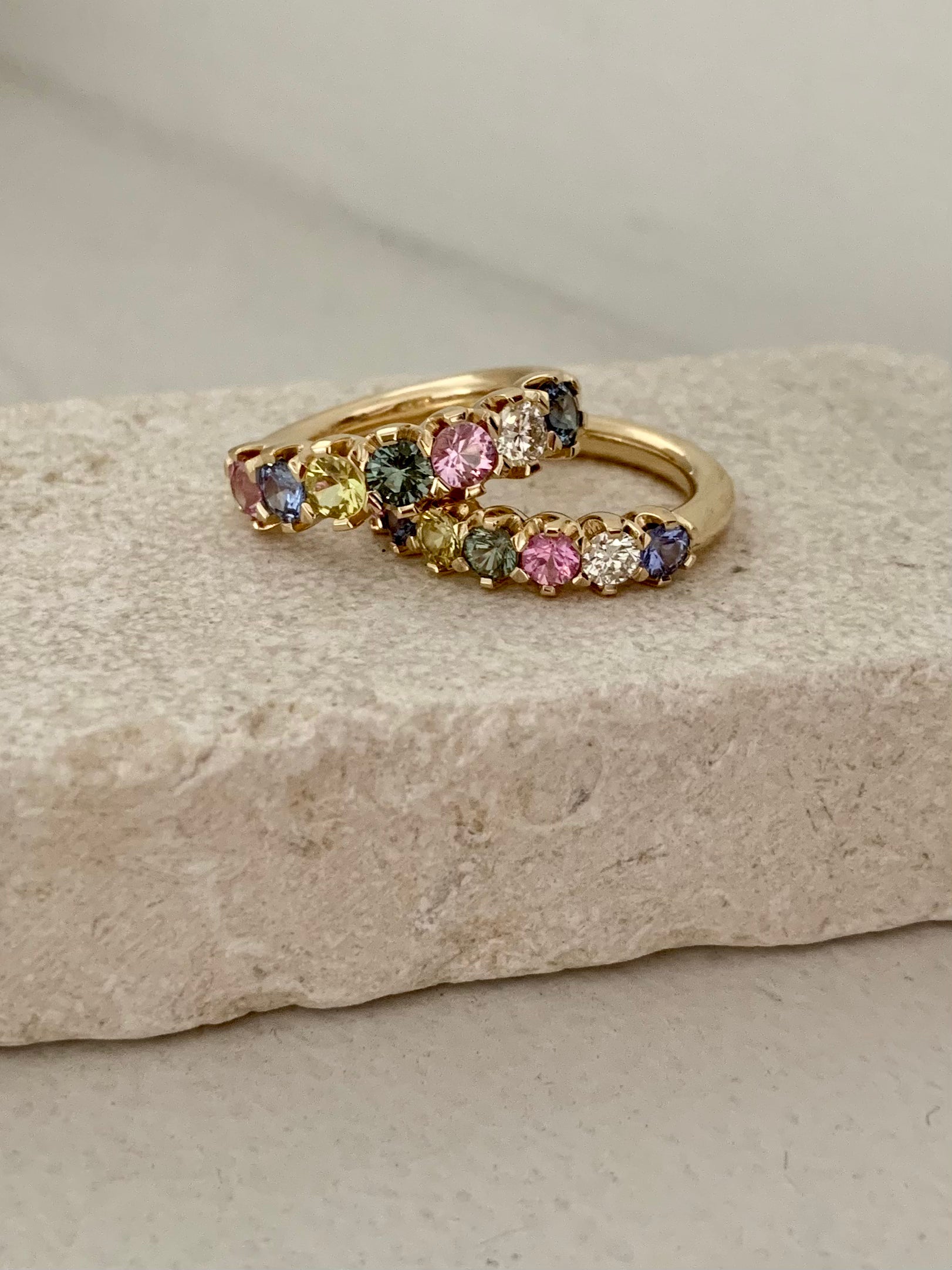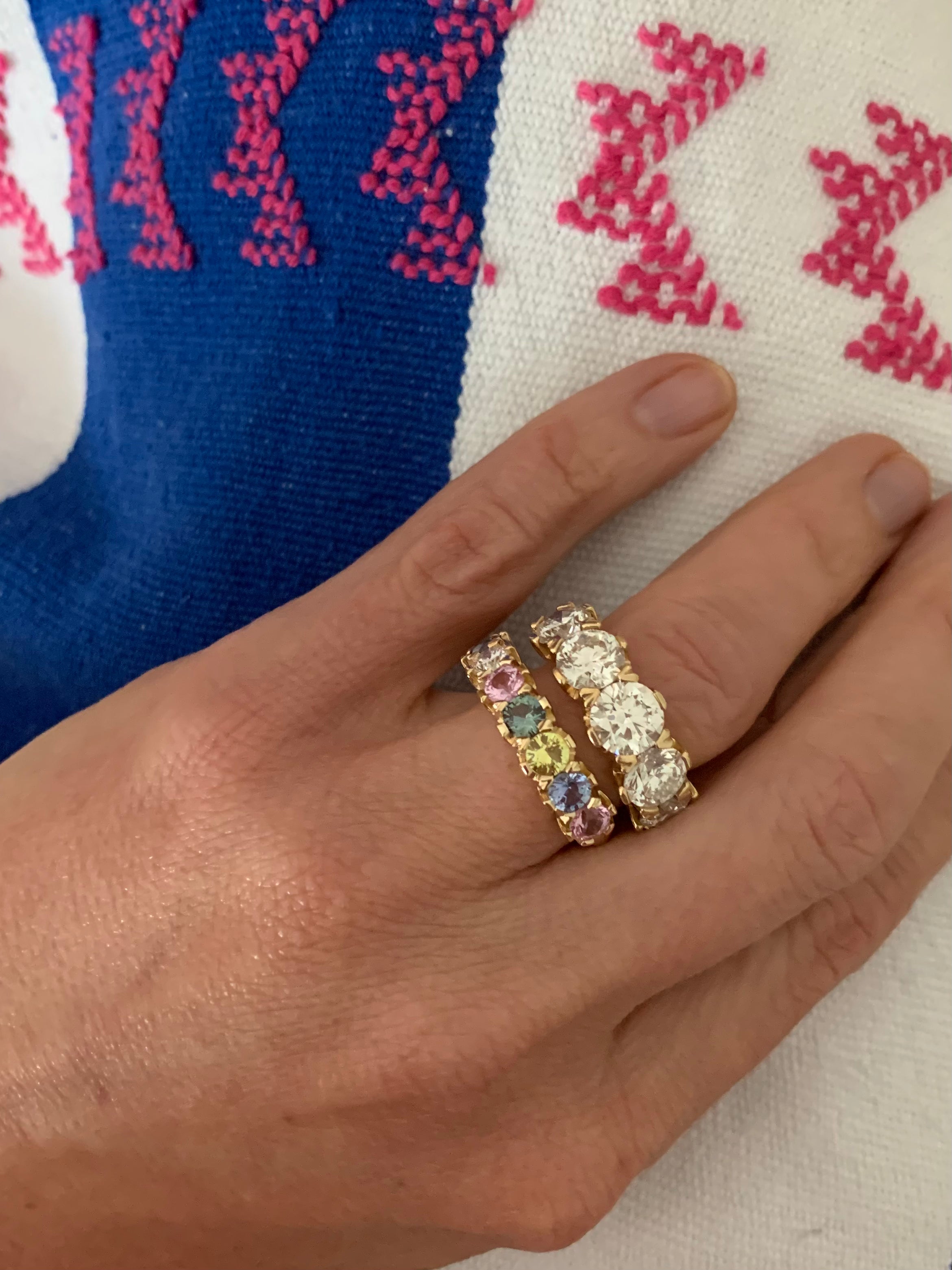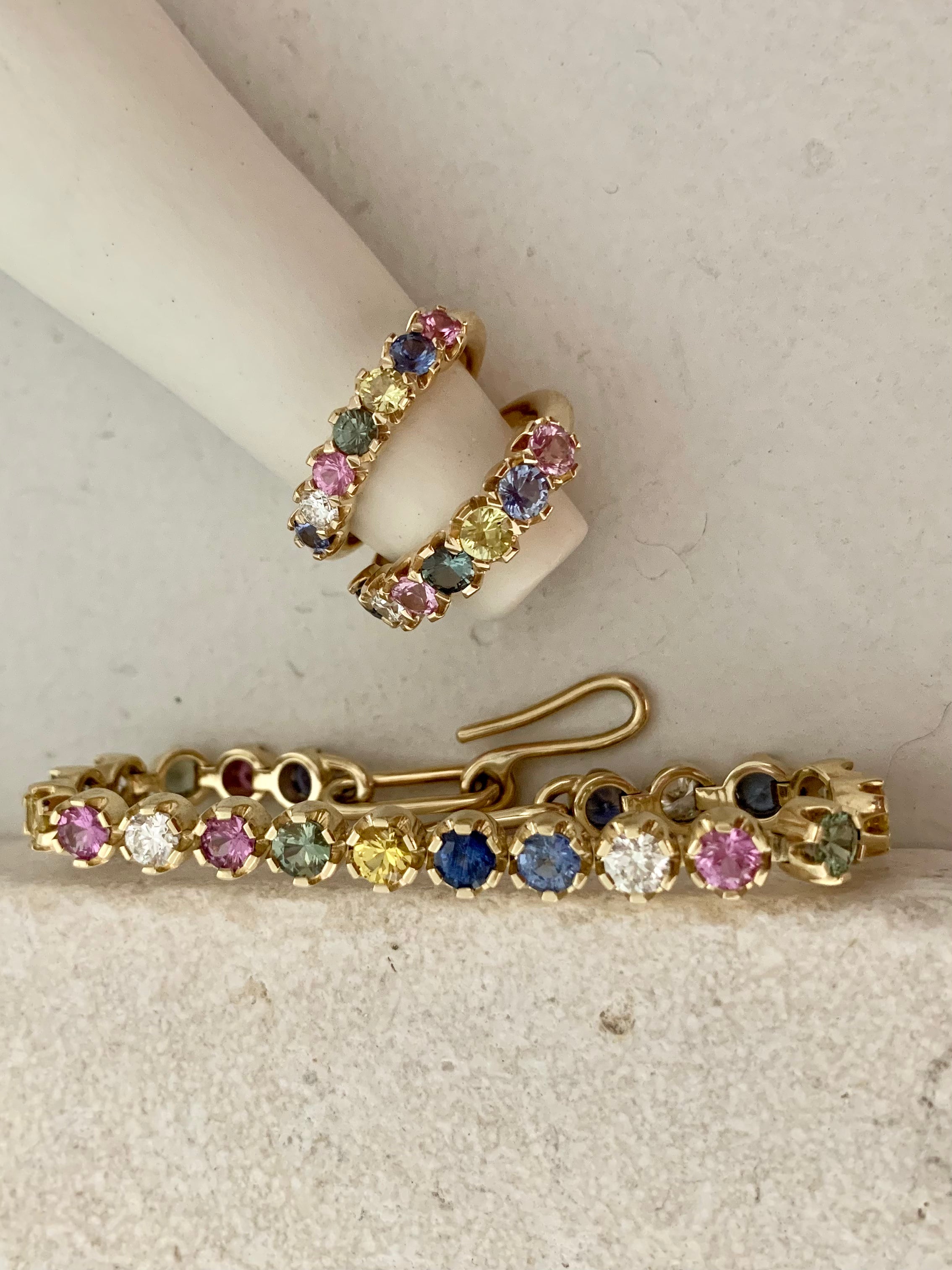 Taking cues from Lucinda's tennis bracelet in mixed sapphires & diamonds. Style with other rings or wear solo, a gorgeous addition.